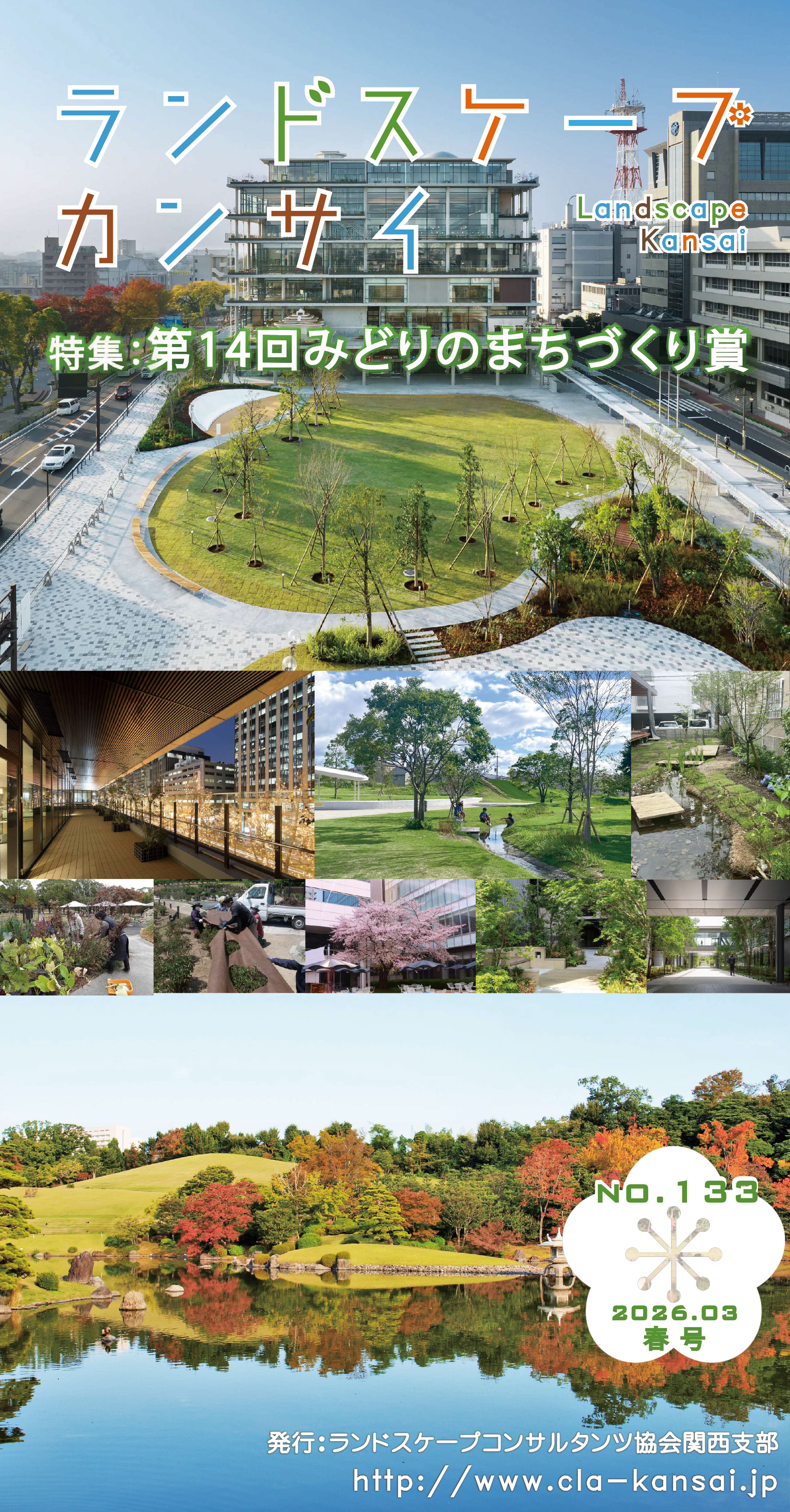 また、本支部ホームページ《 http://www.cla-kansai.jp/ 》内のランドスケープカンサイwebのページでは、本誌の1年間のバックナンバーとともに、アーカイブコーナーでは、過去の「ランドスケープカンサイ」の連載記事をまとめて掲載しております。ぜひご覧ください。